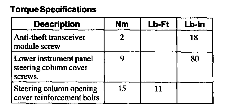Torque Specifications: