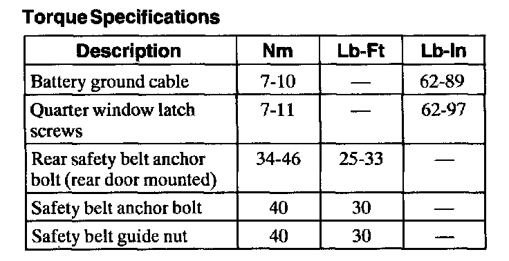 Torque Specifications:
