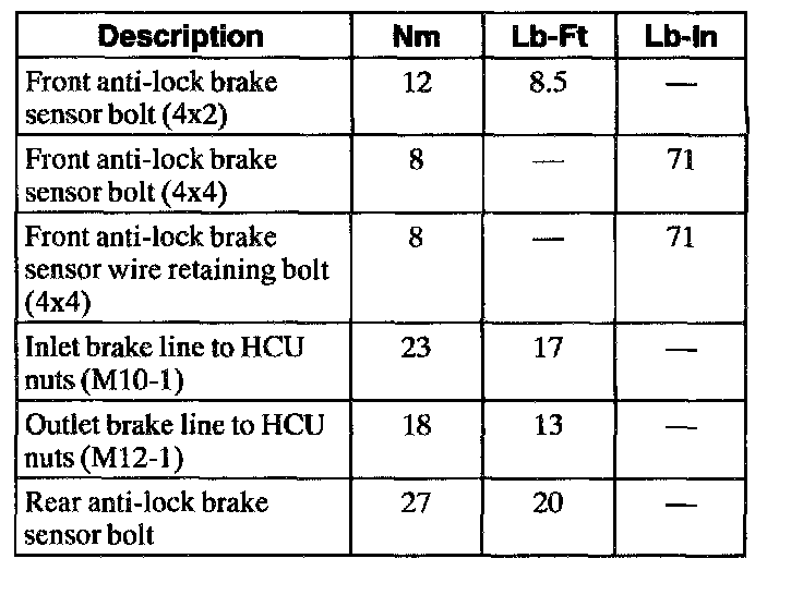 Torque Specifications