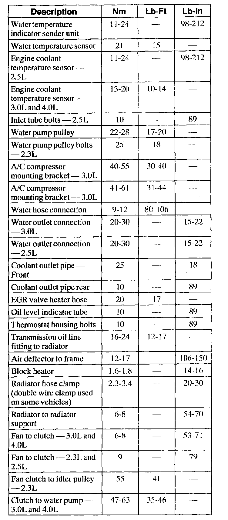 Torque Specifications