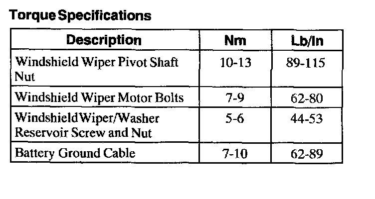 Wiper and Washer Systems: Specifications