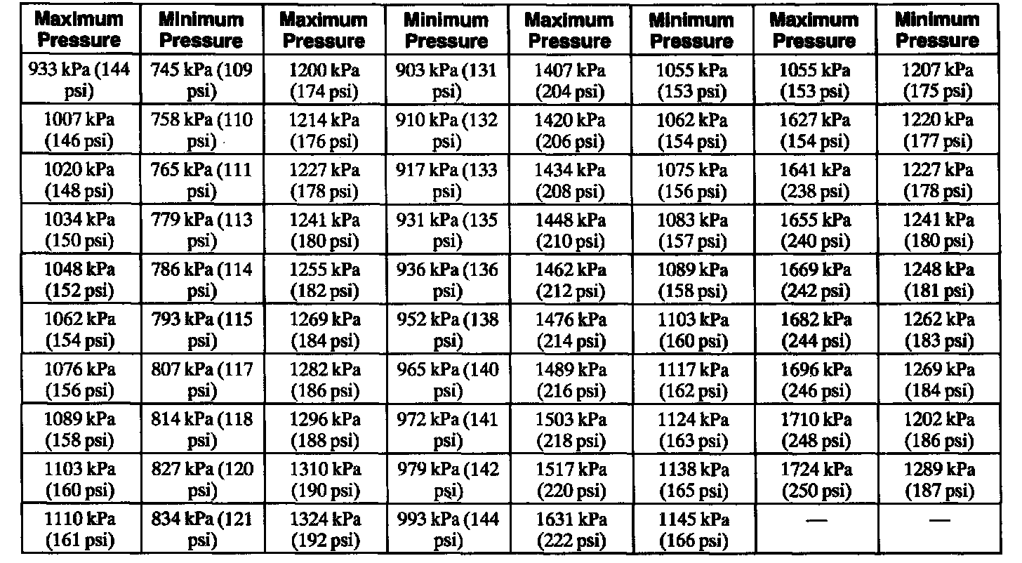 Compression Pressure Limit Chart