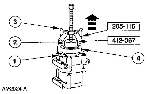 CAUTION: Do not use air tools. The A/C clutch field coil can be easily damaged.