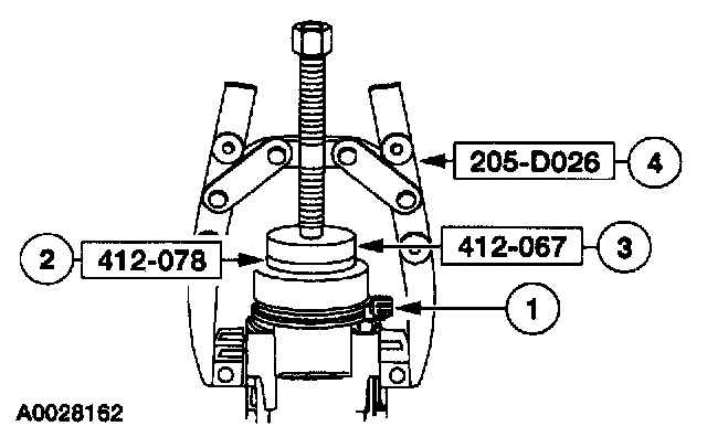 4 Use the special tool to install the A/C clutch field coil until bottomed completely against the A/C compressor.
