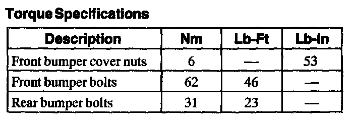 Torque Specifications: