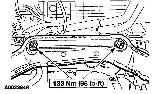 23. Install the right front subframe bolt.