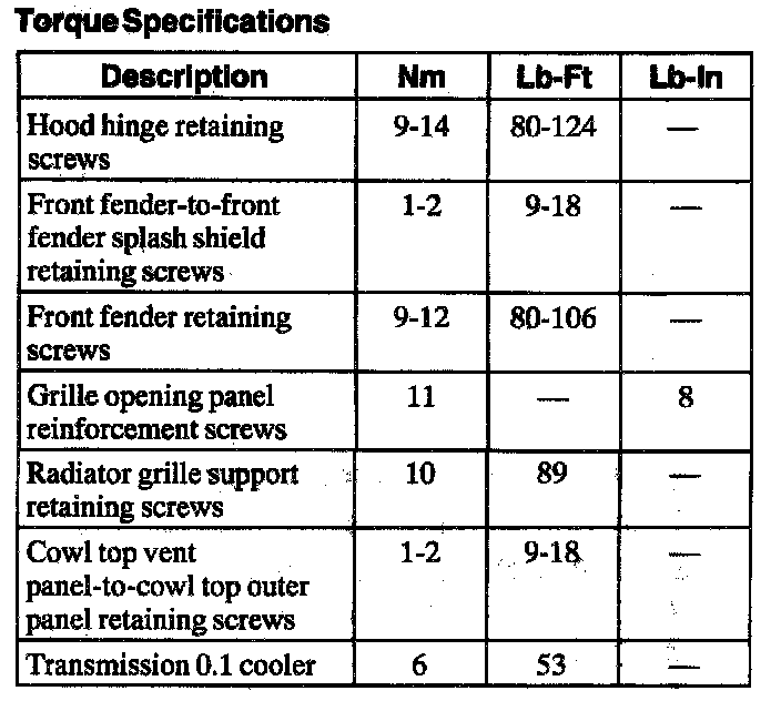 Torque Specifications: