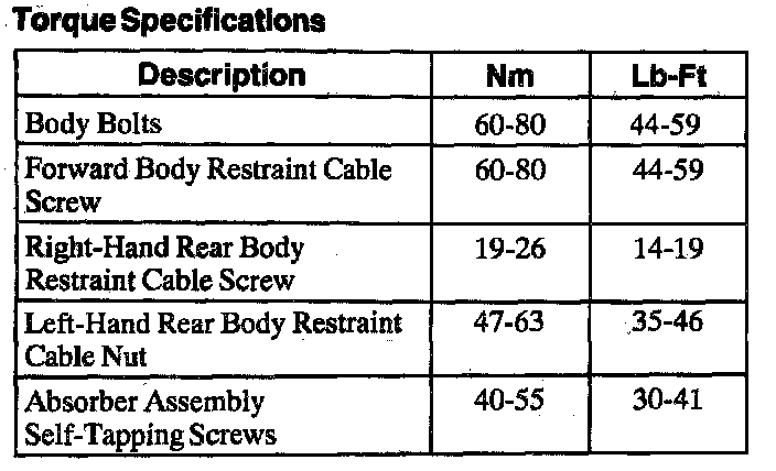 Torque Specifications: