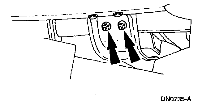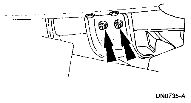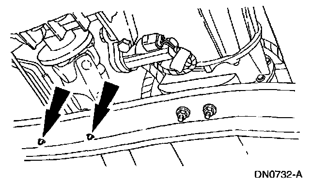 8. Remove the transmission support crossmember nuts and bolts (LH side).