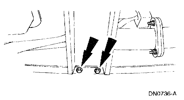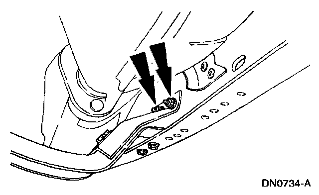 2. Loosely install the transmission support crossmember nuts and bolts (RH side).