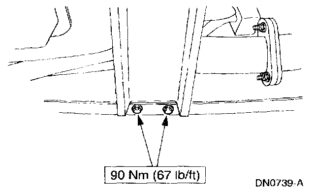 3. Tighten the transmission support crossmember nuts and bolts (LH side) to specification.