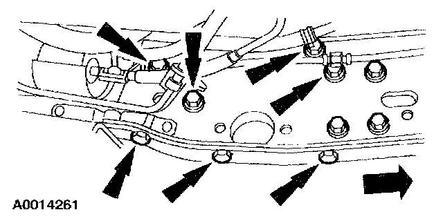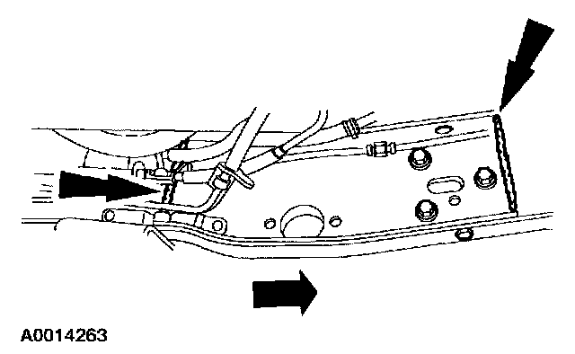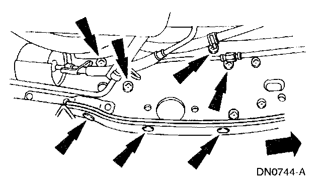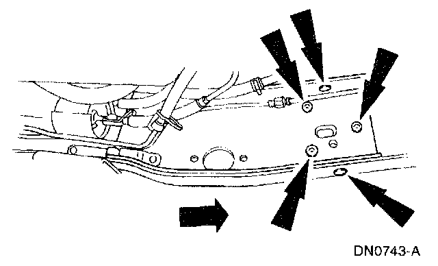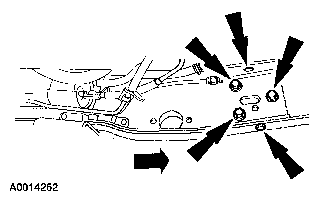 5 Remove the exhaust system components as necessary to access the front stub-to-reinforcement rivets.