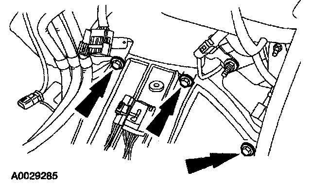 28. Connect the transmission wiring harness and the LH and RH heated exhaust gas oxygen sensor connectors.