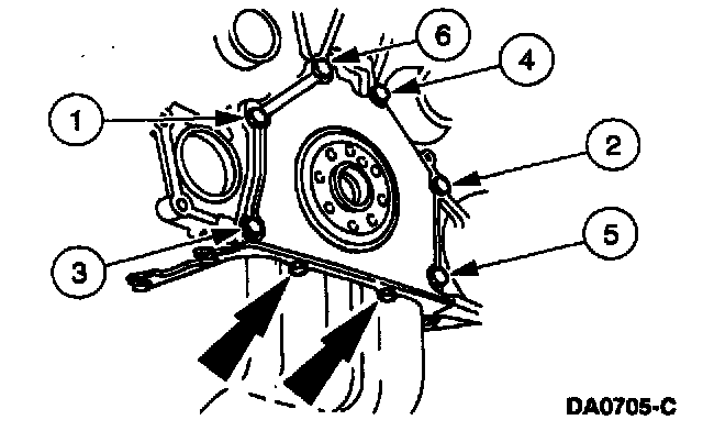 Apply a bead of silicone gasket and sealant around the rear oil seal retainer sealing surface.