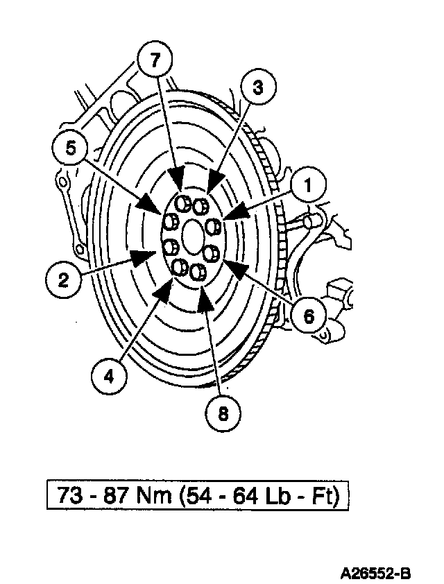 16. Install and tighten the four new nuts retaining the torque converter.