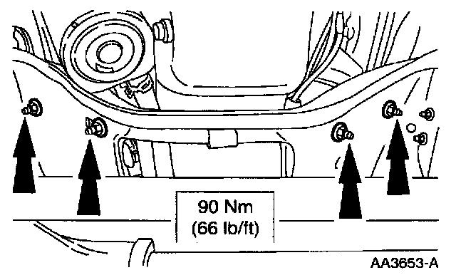 14. Install the lower transmission to engine bolts.