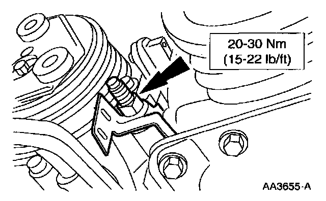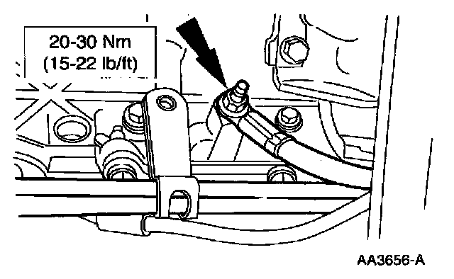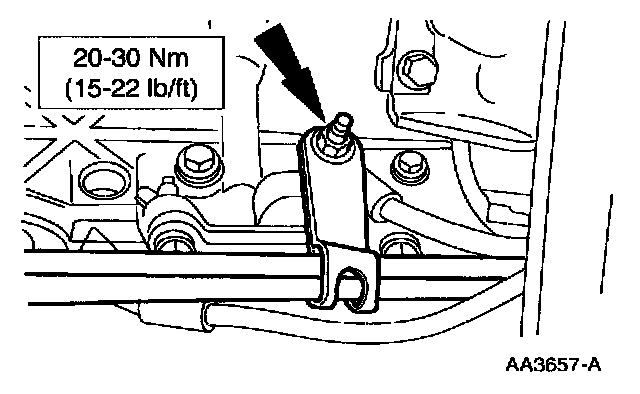 27. Install the remaining transmission-to-engine bolts and fuel line bracket.