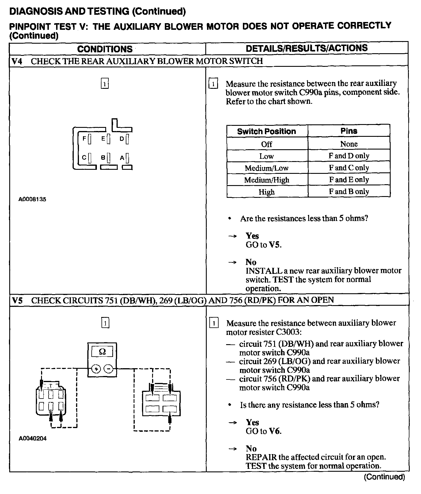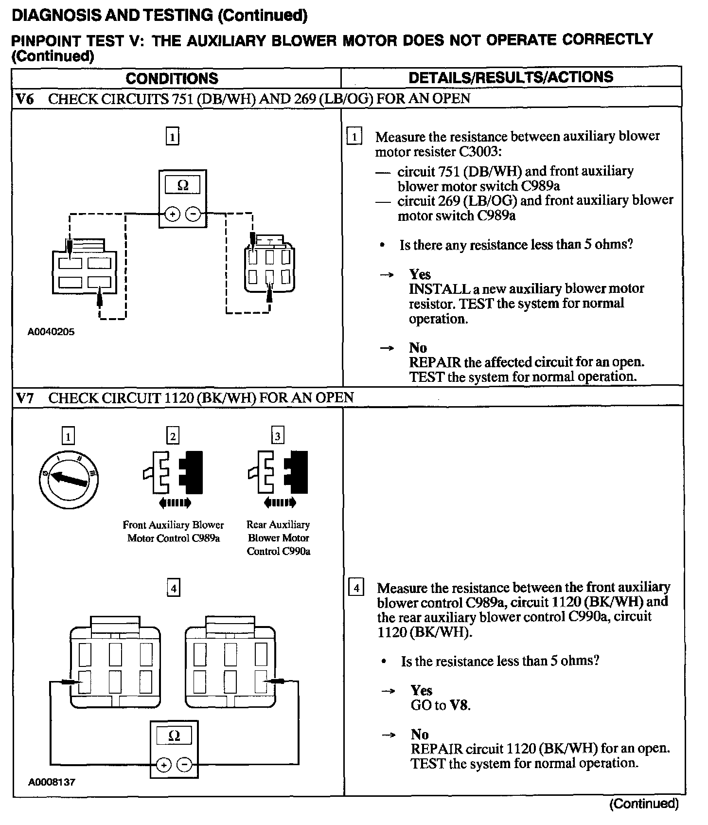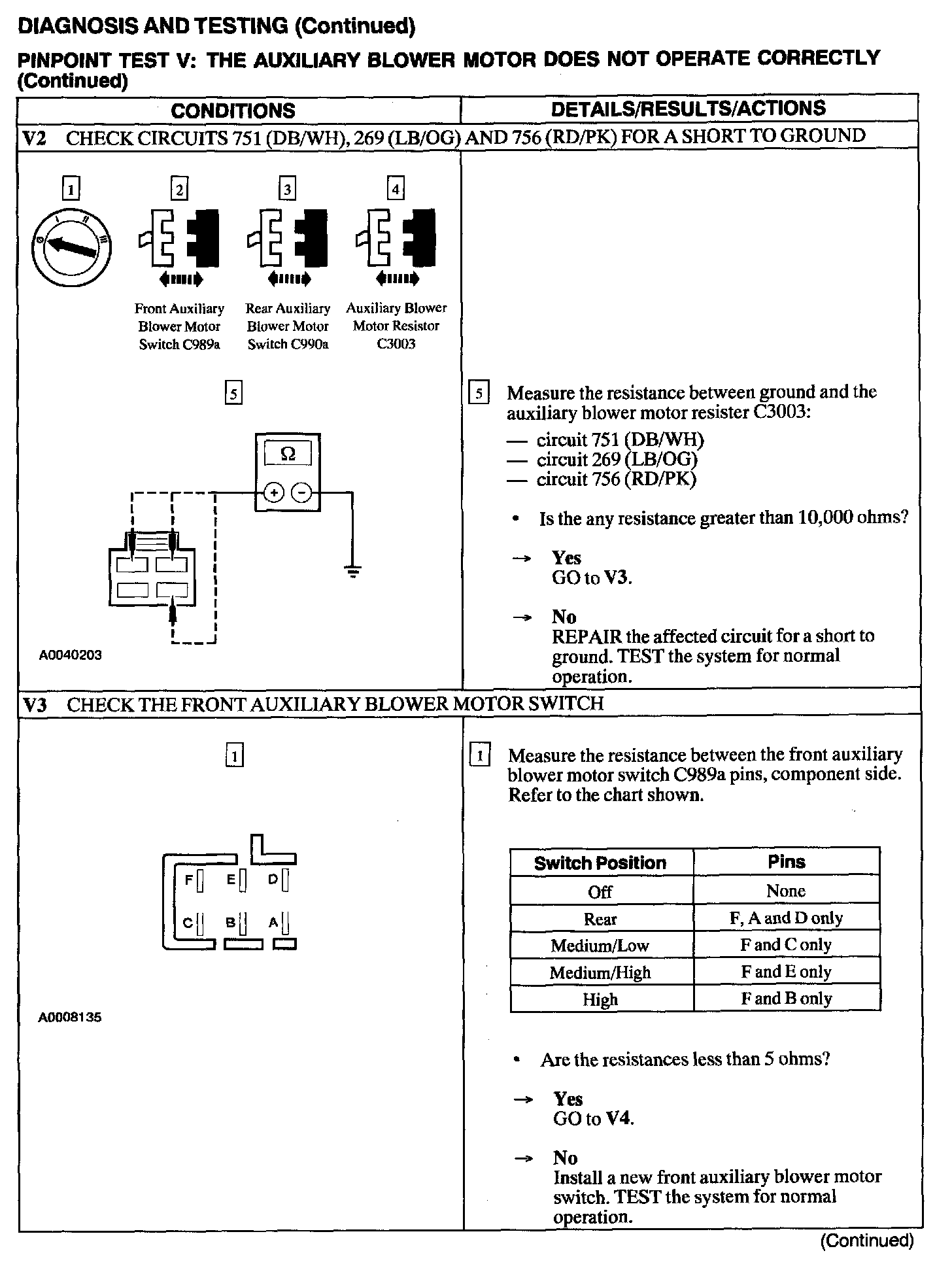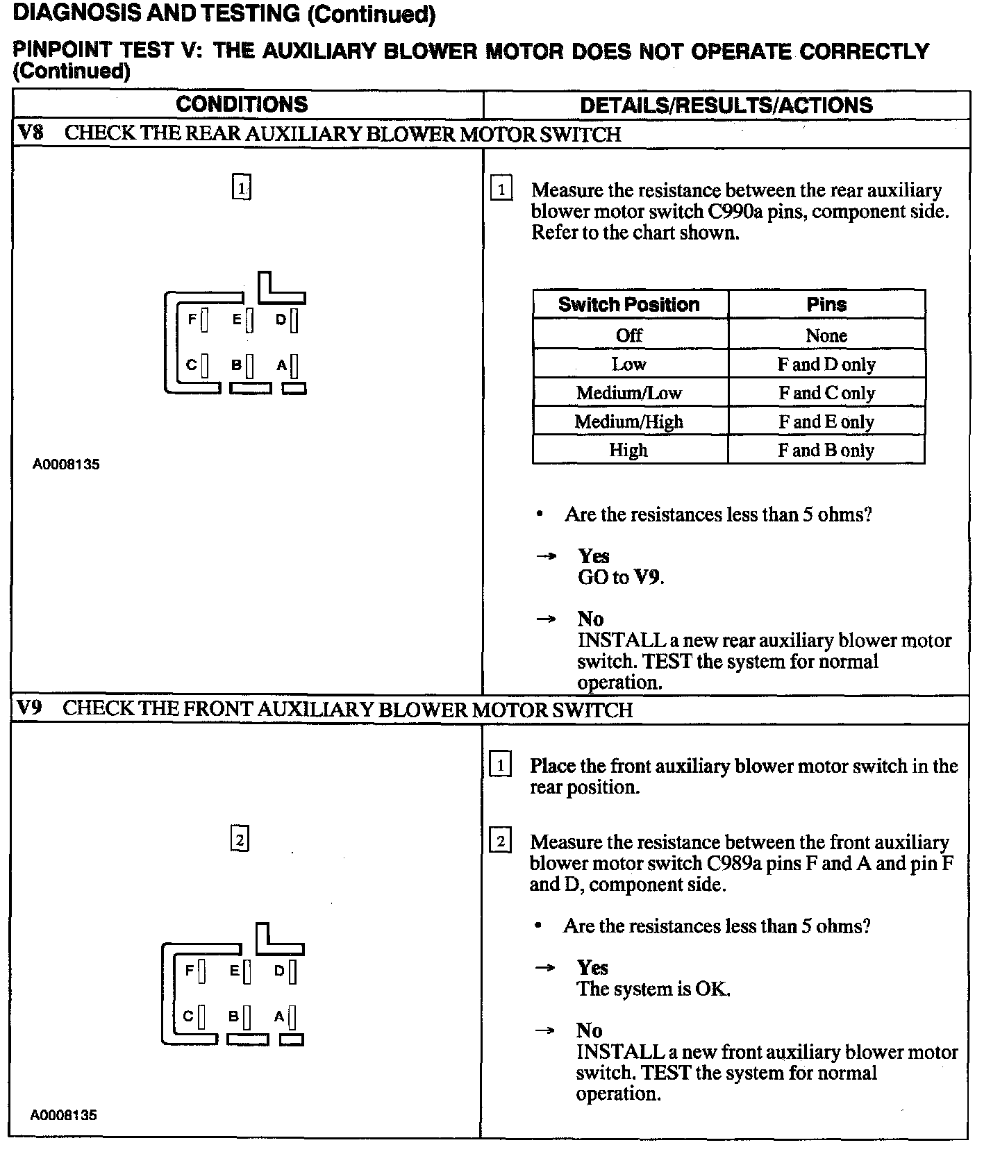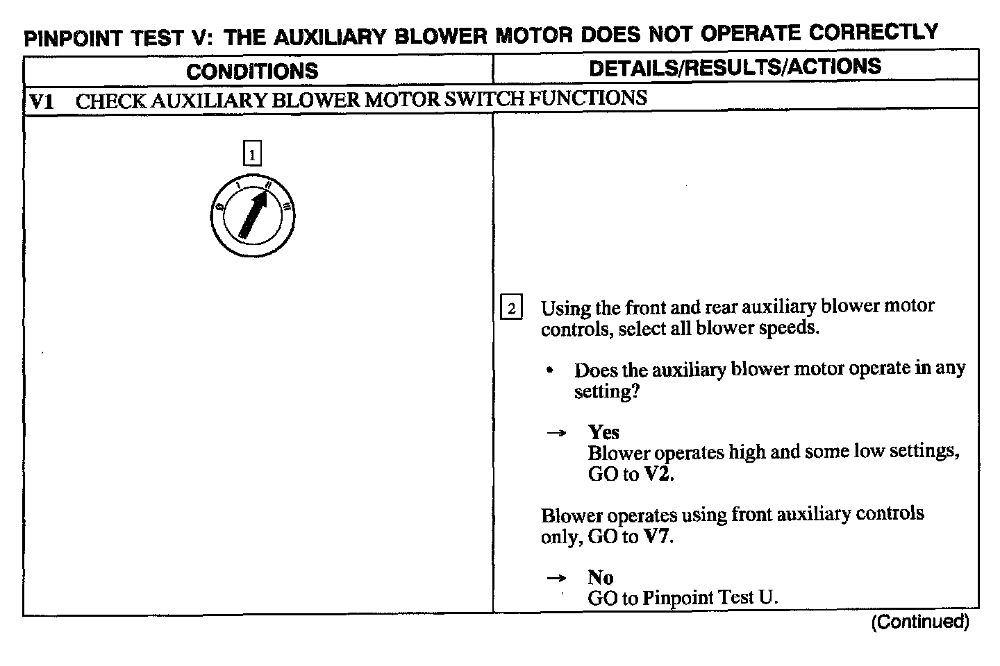 Test V: Auxiliary Blower Motor Does Not Operate Correctly
