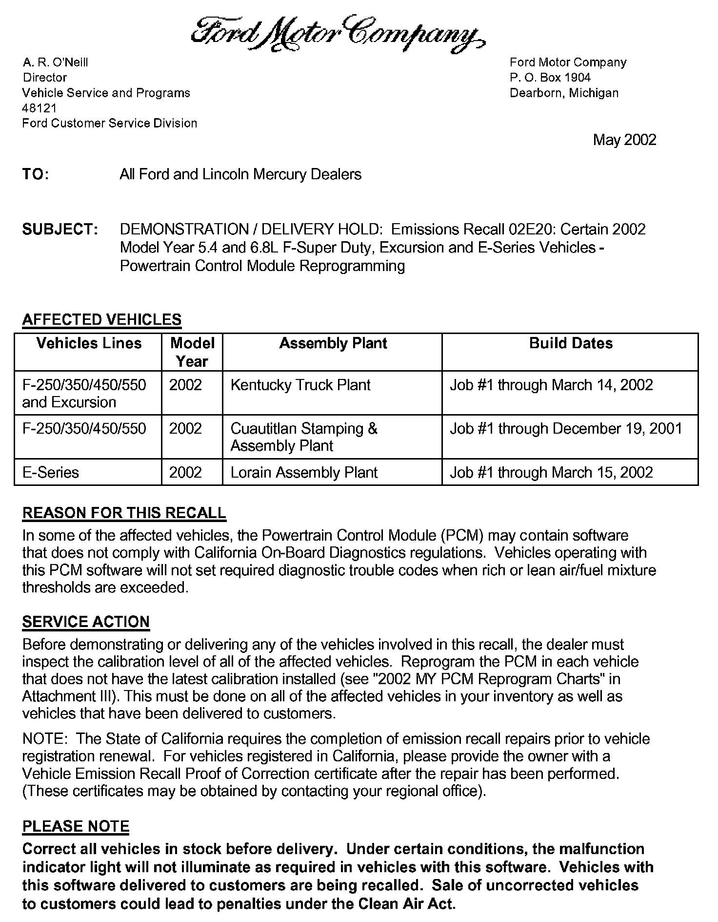 Dealer Letter
