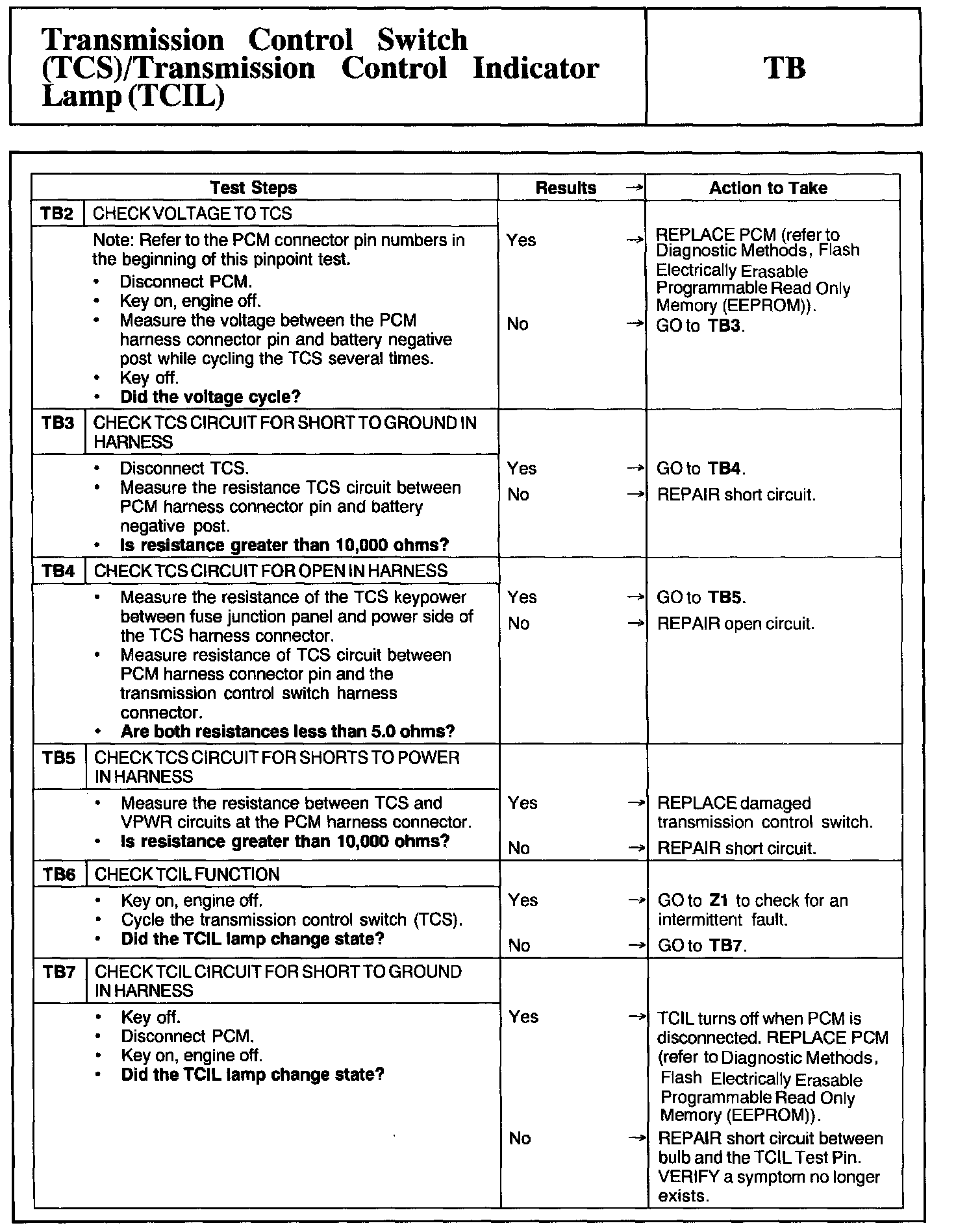 Tests TB: Trans Control Switch/Trans Control Indicator Lamp