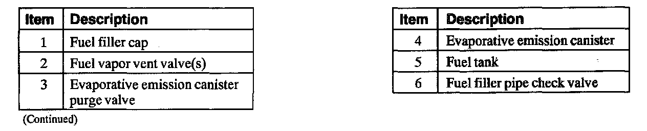The fuel filler pipe check valve is an integral part of the fuel tank or the fuel filler pipe. It is intended to prevent liquid fuel from re-entering the fuel filler pipe from the fuel tank on refueling or rollover conditions.