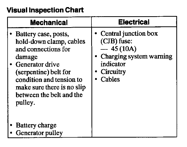 ^ The charging system warning indicator will illuminate with the ignition switch in RUN and the engine OFF.