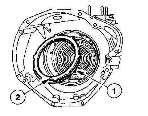 Install the intermediate/overdrive cylinder retaining ring over the intermediate/overdrive cylinder with the ring opening in the 6 o'clock position to allow for the correct fluid drainback.