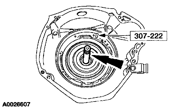 1 Extend the probe of the special tool into the hole in the center support assembly until flush with the No. 6 center support thrust washer.