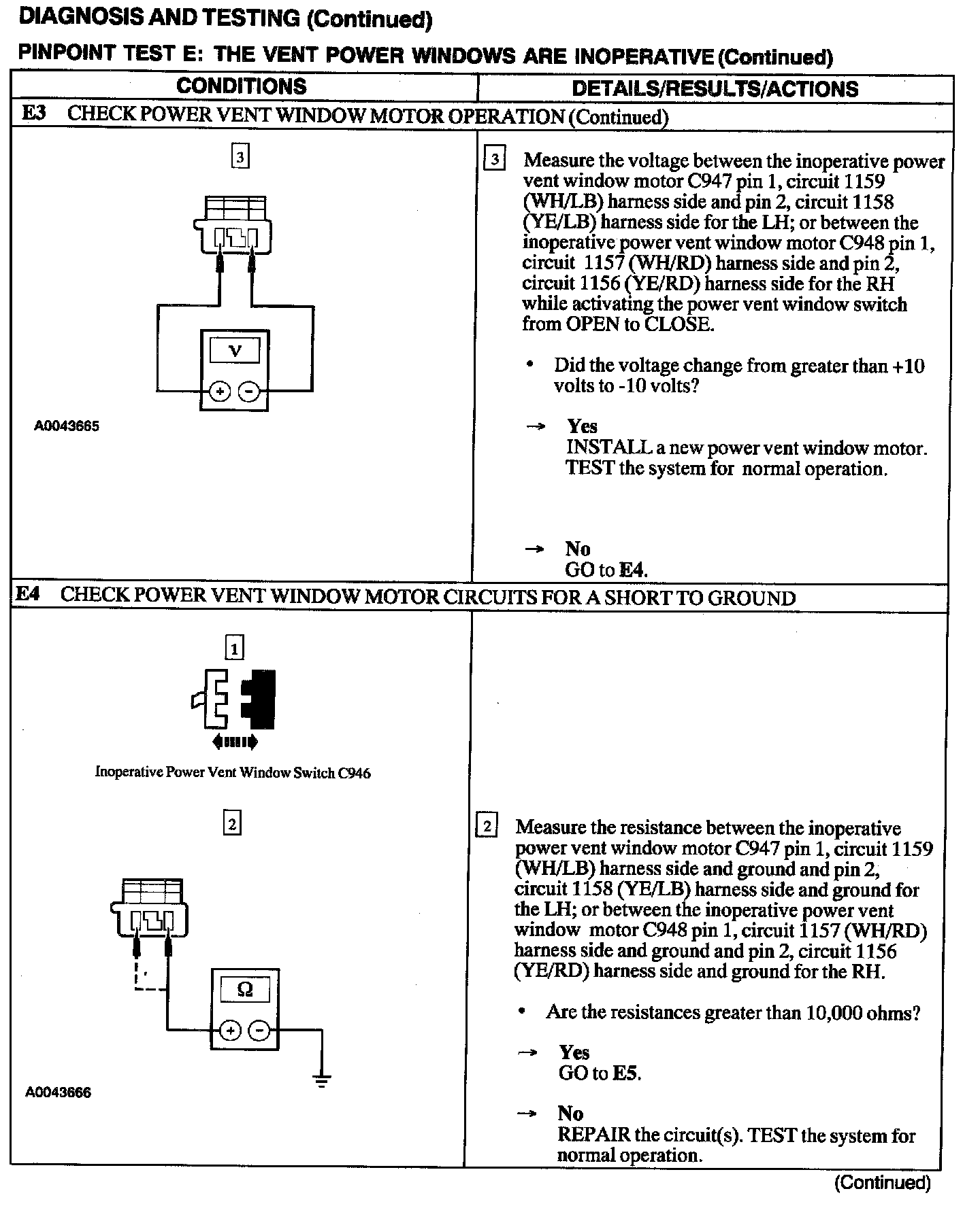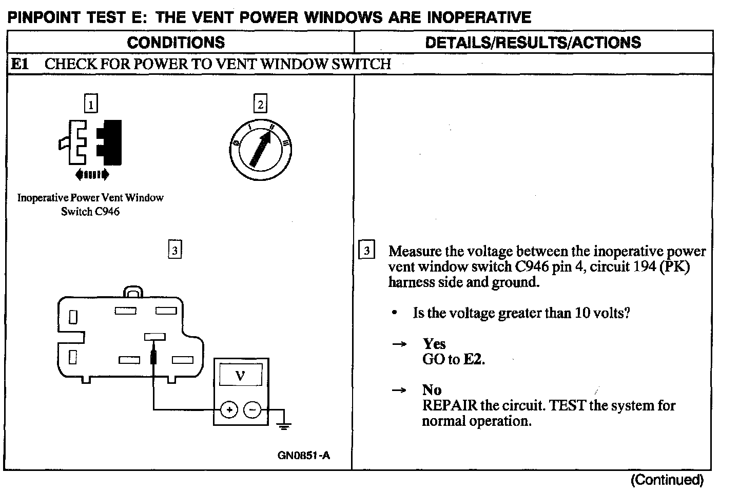 Test E: Vent Power Windows Are Inoperative