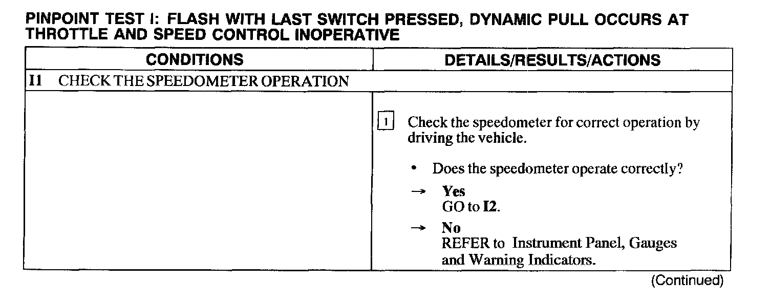 Test I: Switch Flash, Dynamic Pull Occurs, Speed Control Inop.
