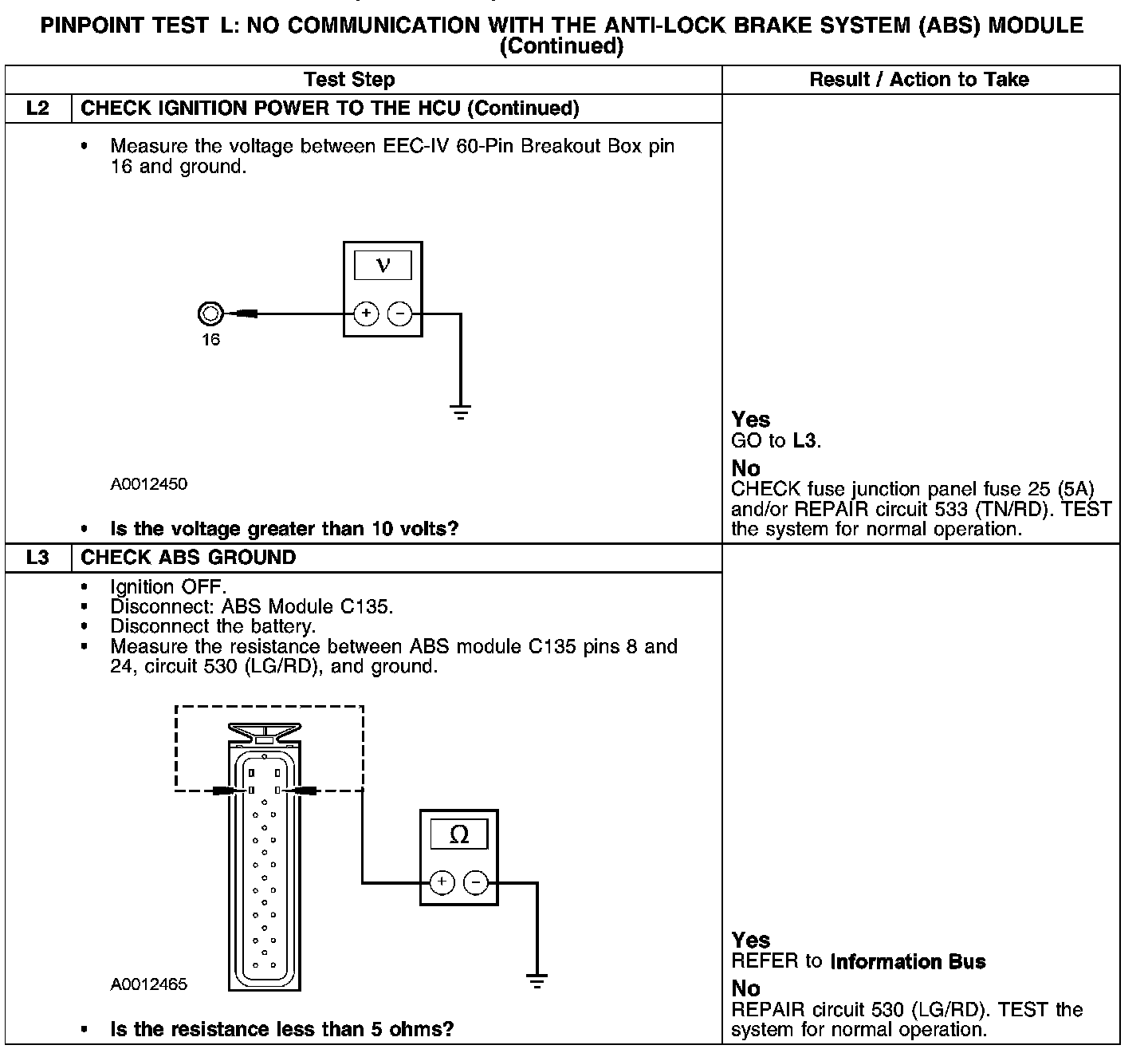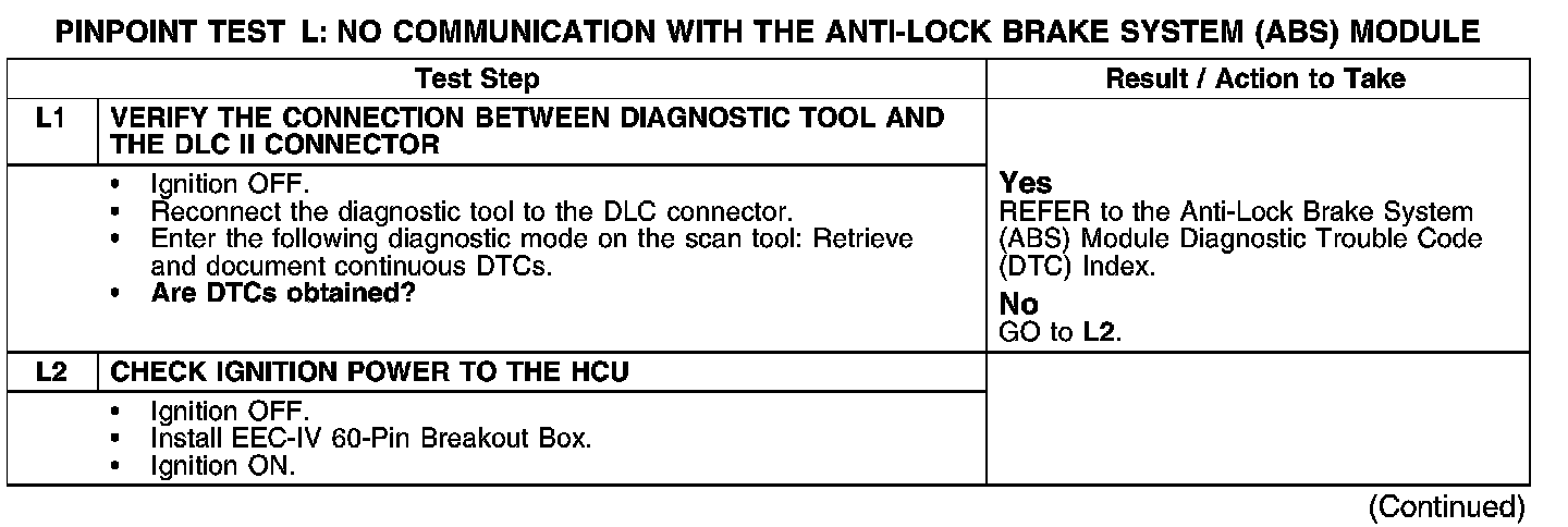 PINPOINT TEST L: NO COMMUNICATION WITH THE ANTI-LOCK BRAKE CONTROL MODULE