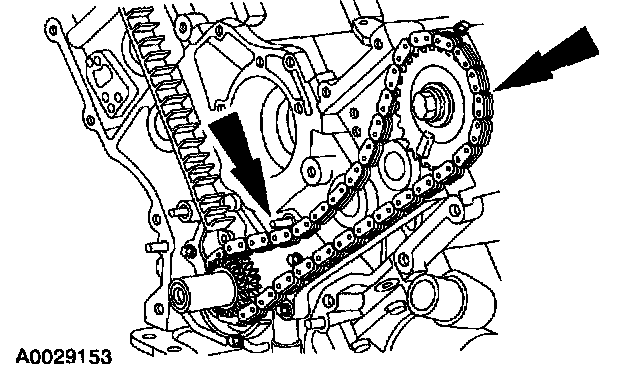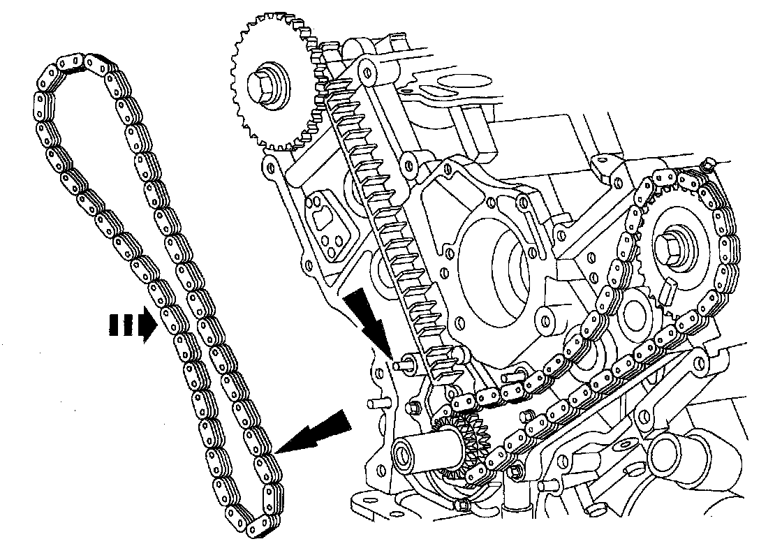 - Install the RH (outer) timing chain on the crankshaft sprocket.
