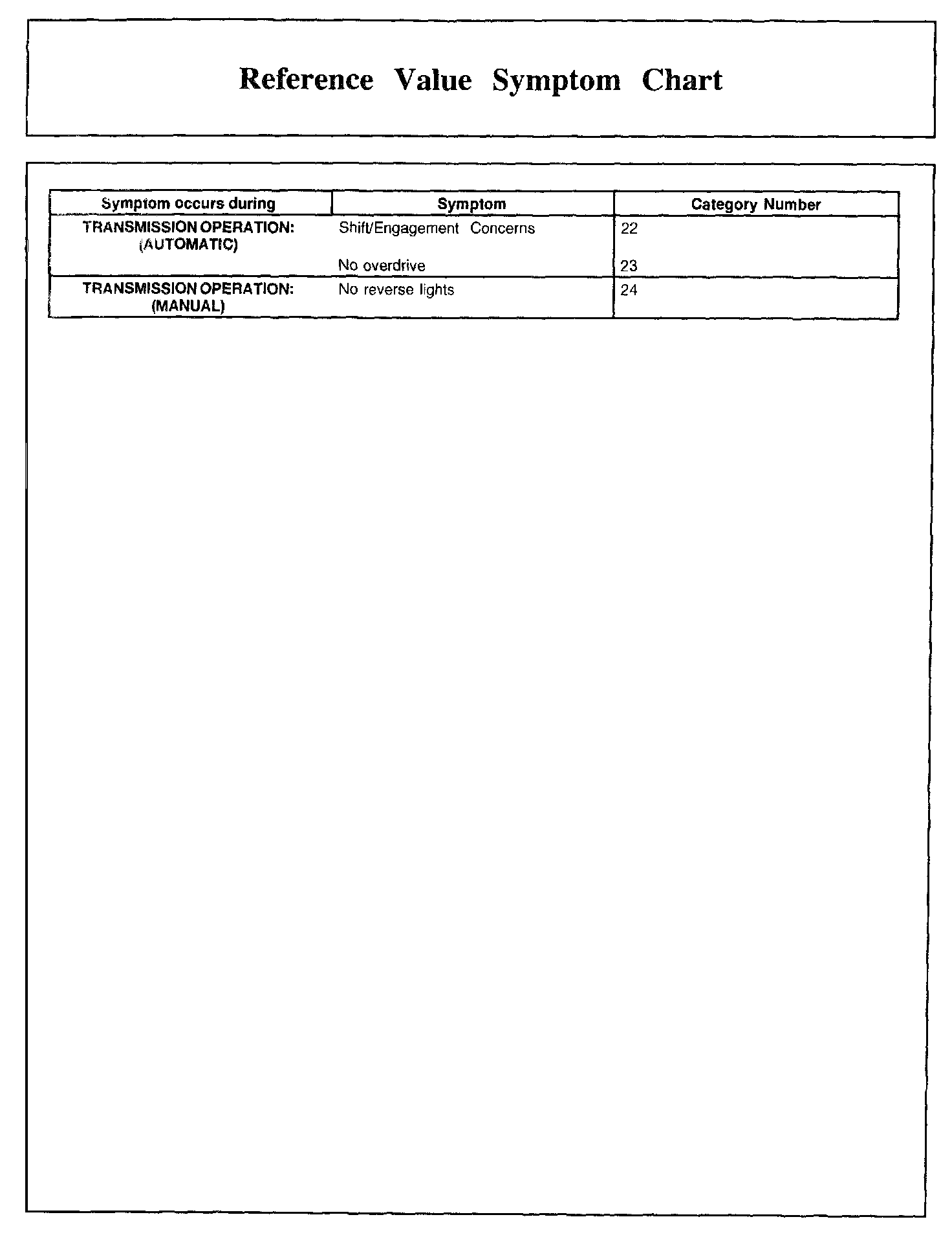 Reference Value Symptom Chart, Part 1: