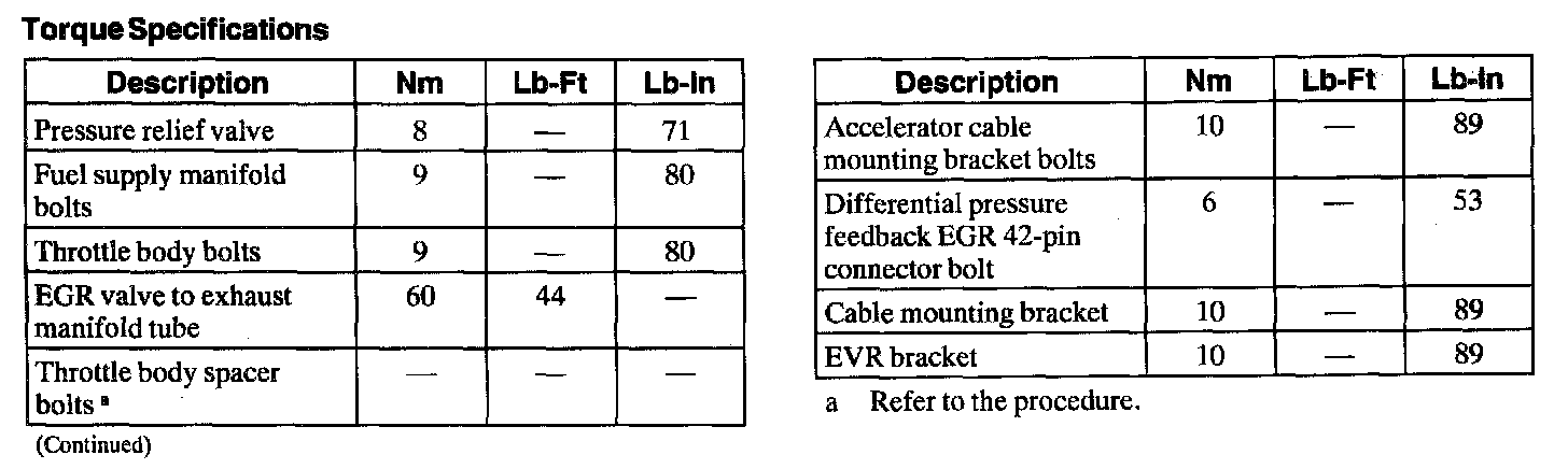 Torque Specifications:
