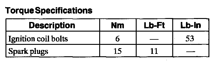 Torque Specifications: