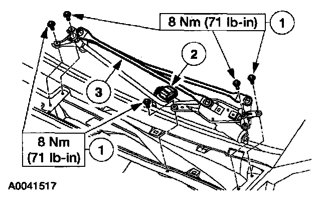 4. Remove the bolts and the windshield wiper motor.