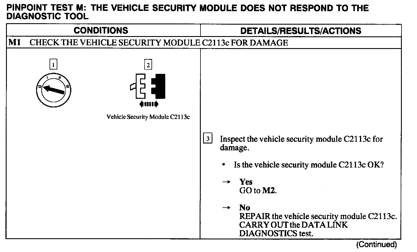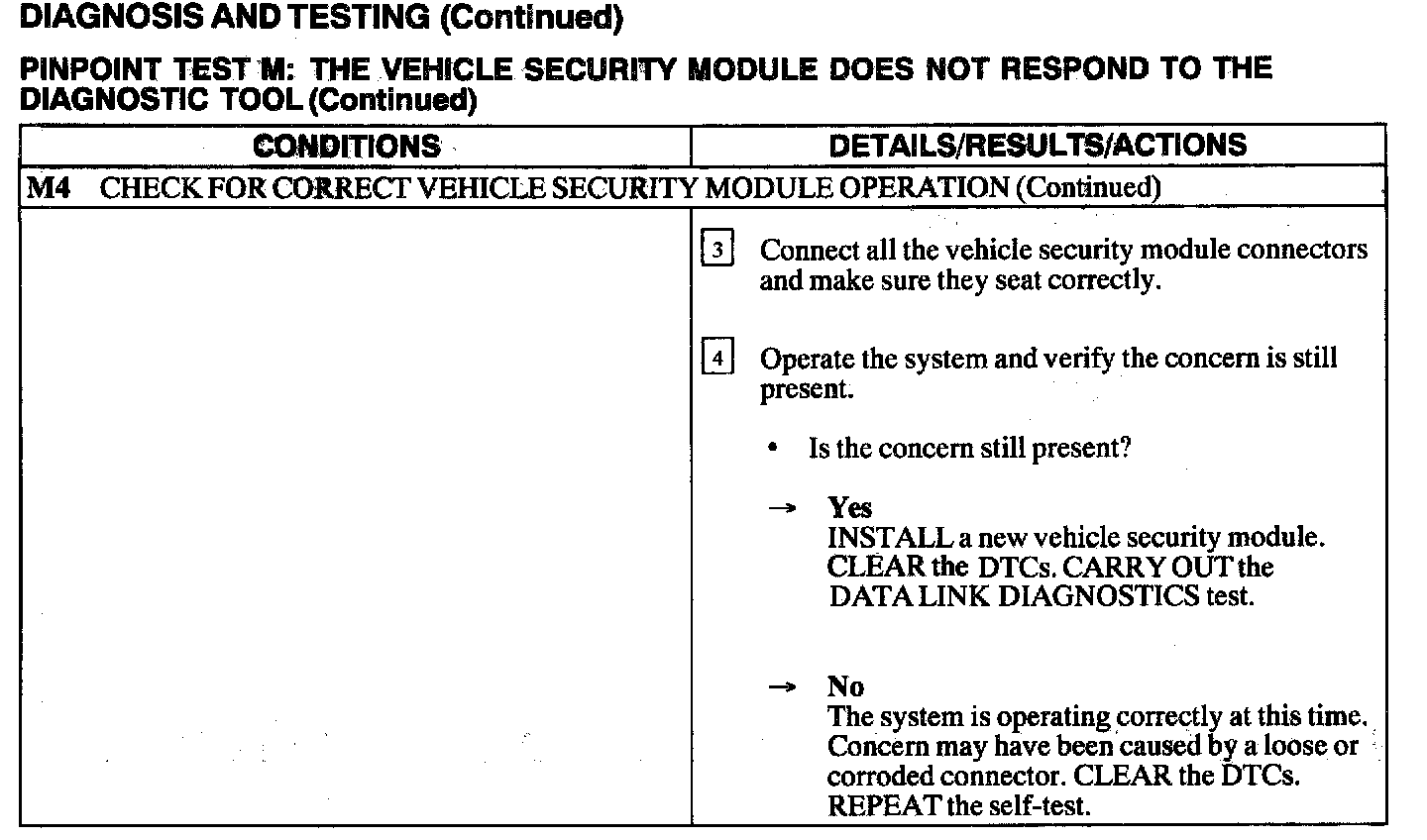 Test M: Vehicle Security Module Does Not Respond To Diagnostic Tool