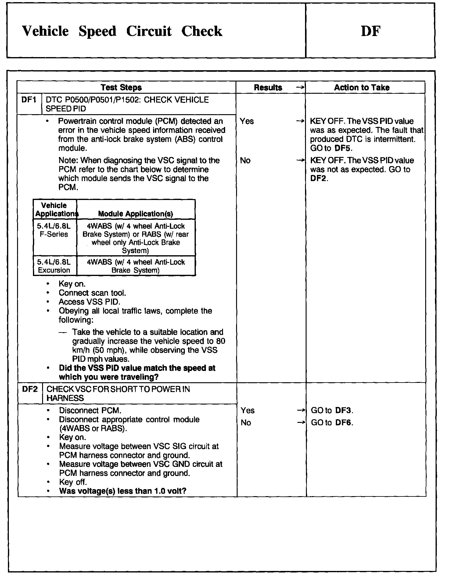 Tests DF: Vehicle Speed Circuit Check