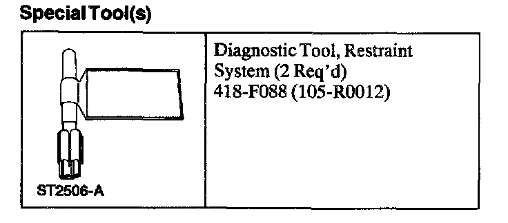 WARNING: THE RESTRAINT SYSTEM DIAGNOSTIC TOOL IS FOR RESTRAINT SYSTEM SERVICE ONLY. REMOVE FROM THE VEHICLE PRIOR TO ROAD USE. FAILURE TO REMOVE COULD RESULT IN INJURY AND POSSIBLE VIOLATION OF VEHICLE SAFETY STANDARDS.