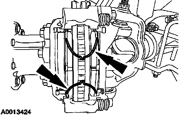 2 Remove the front disc brake caliper anchor plate stainless steel rail clips.