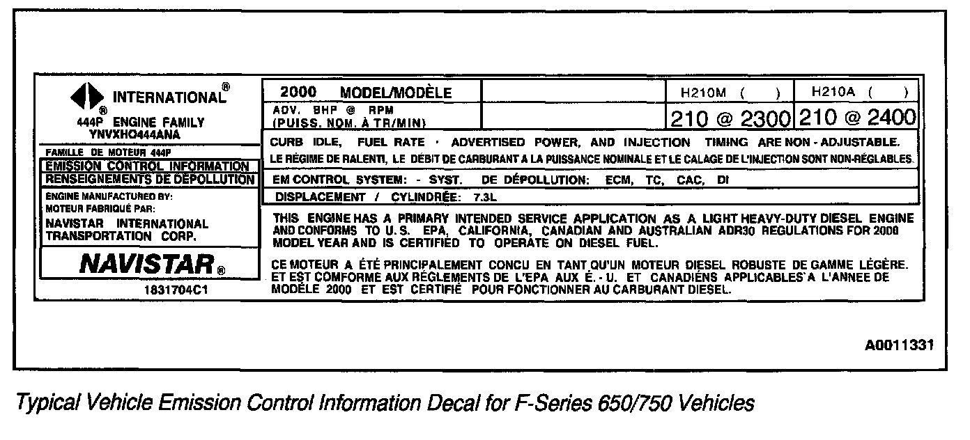 Typical Vehicle Emission Control Information Decal For F-Series 650/750 Vehicles: