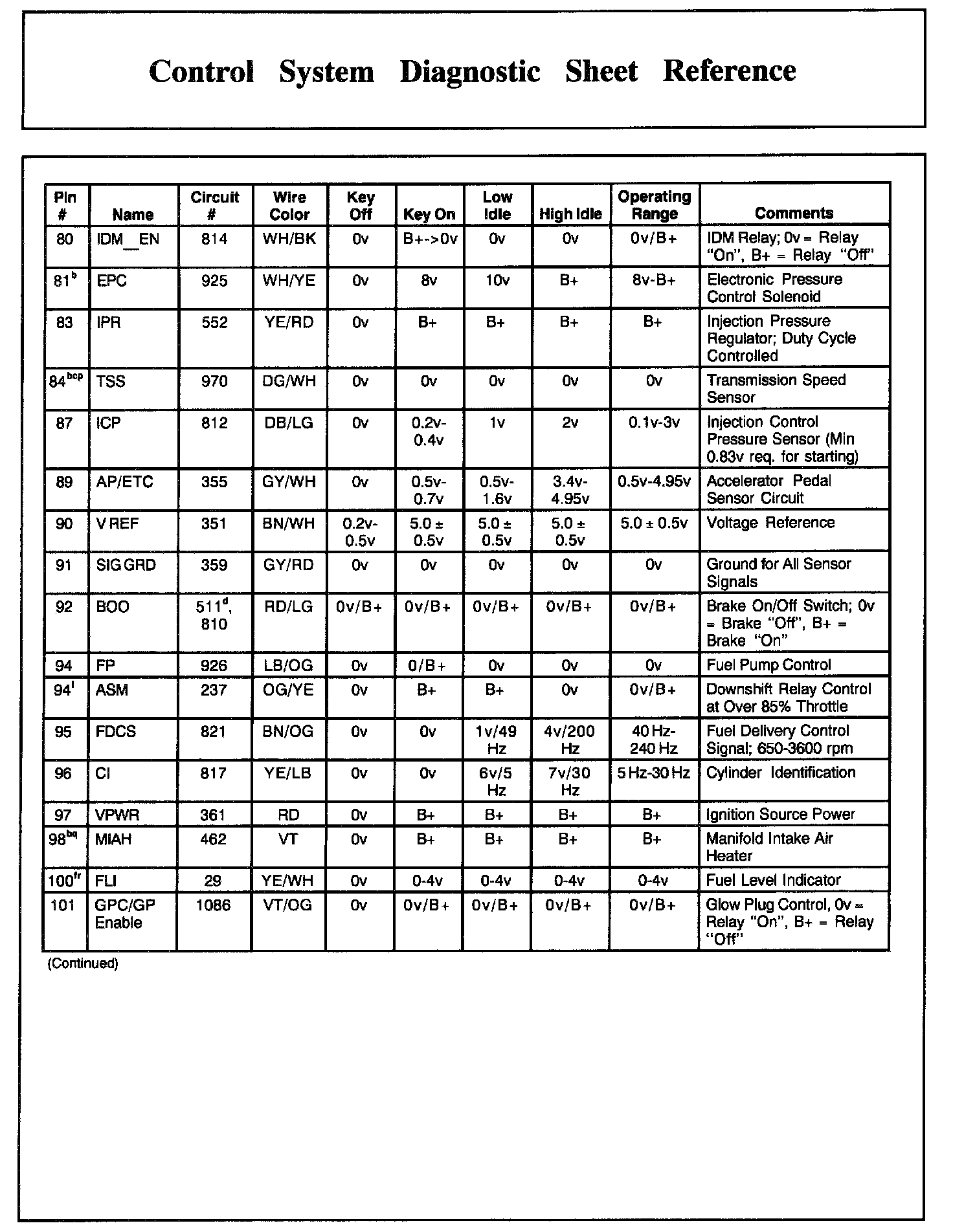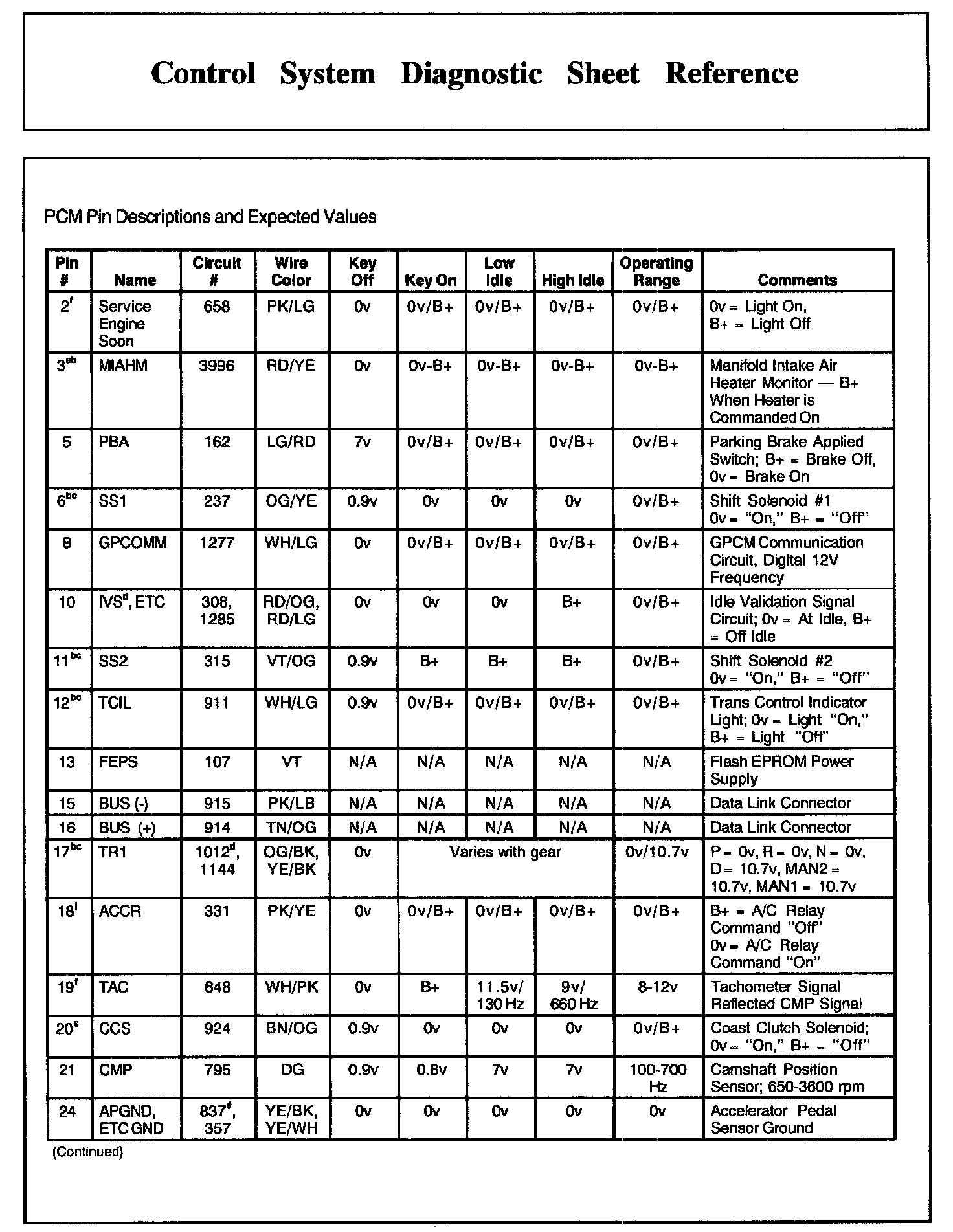 PCM Pin Descriptions And Expected Values, Part 2:
