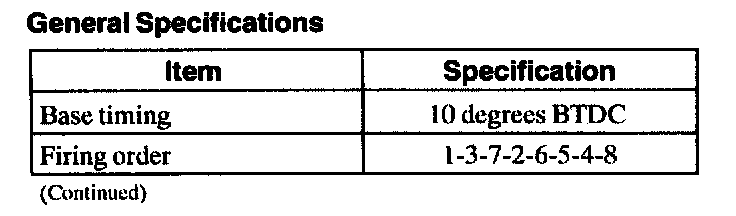 Ignition Timing: Specifications