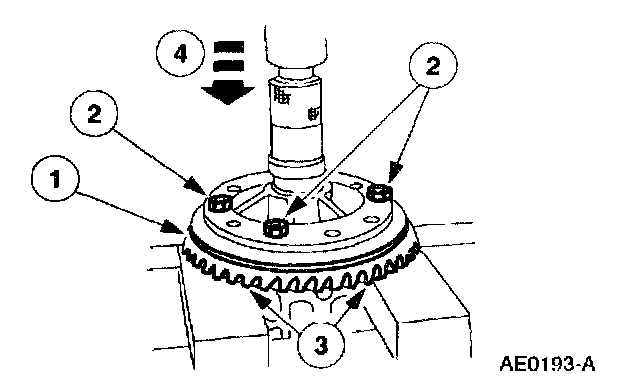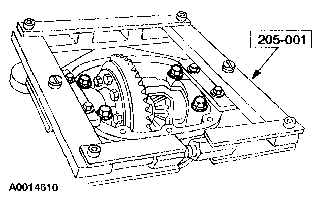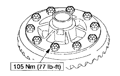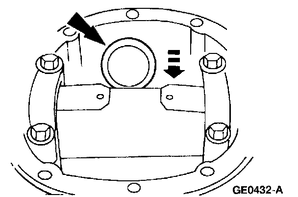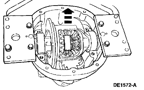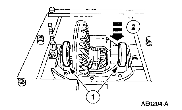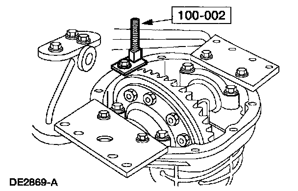 42. NOTE: The bolts retaining the differential ring gear to the differential case may interfere while carrying out this procedure. If so, remove three to five bolts to provide clearance.