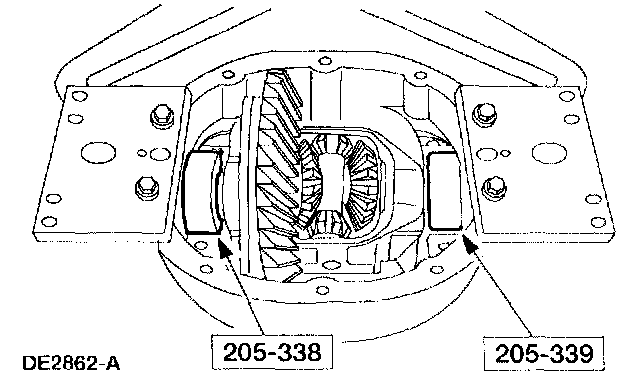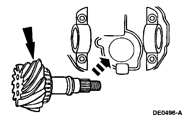 9. CAUTION: Use the same pinion bearings and drive pinion bearing adjustment shim from the drive pinion bearing adjustment shim selection procedure for final assembly.