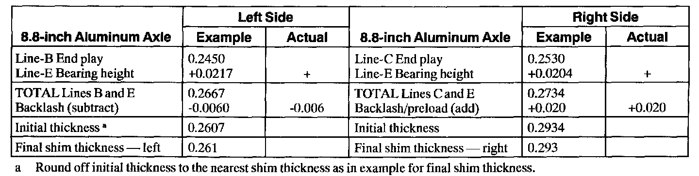 5 Record the reading on the differential hearing shim selection procedure line B.