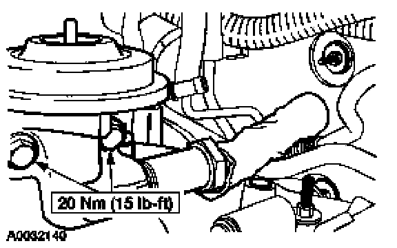 2. Remove the brake booster vacuum tube retaining bolt and disconnect the vacuum tube and the vacuum hose.