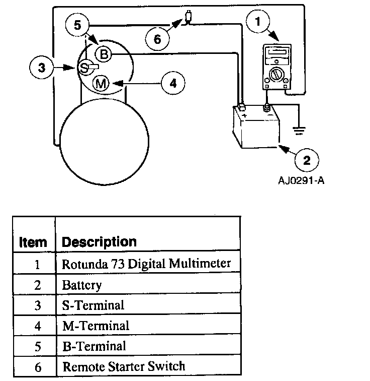 3. Connect the Rotunda 73 Digital Multimeter positive lead to the starter motor housing (the connection must be clean and free of rust or grease). Connect the negative lead to the negative (-) battery terminal.