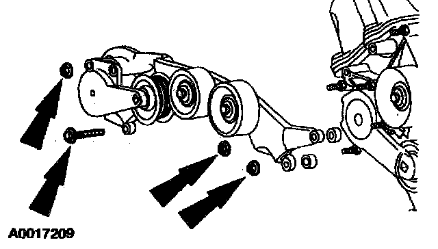 12. Remove the bolt, nuts and idler support bracket.