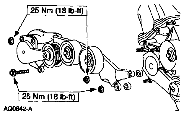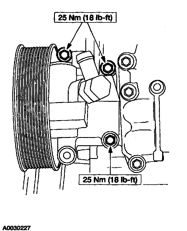 11. NOTE: The front lower hole in the power steering pump is not used.